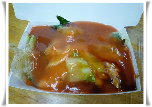 雙蛋蚵仔煎~還蠻大的,把整個便當盒佔滿了